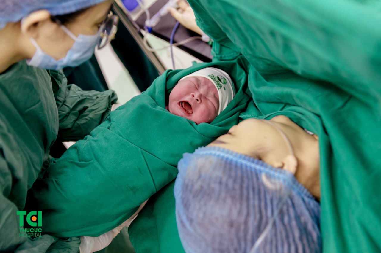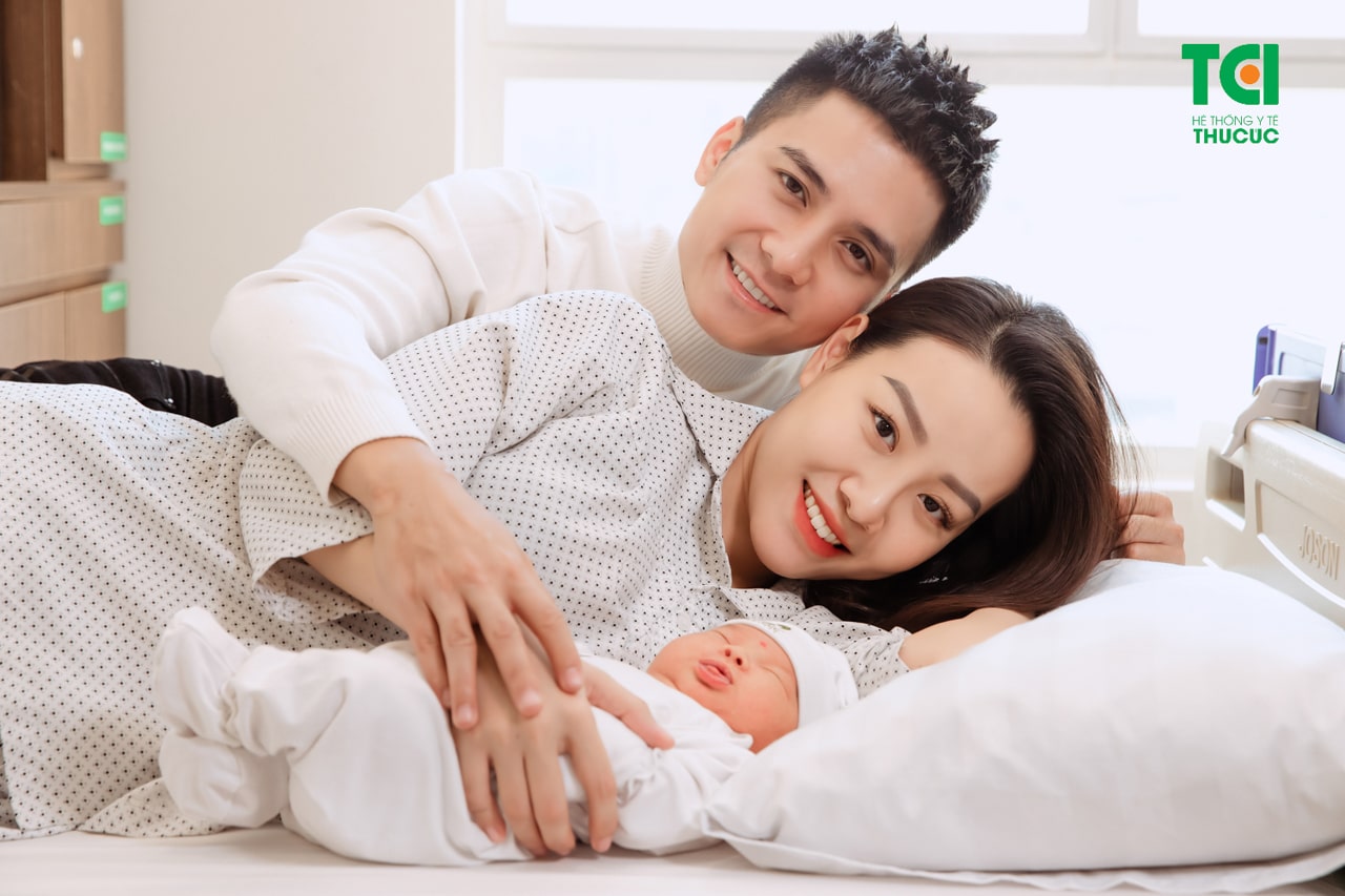 Actor Manh Quan and his wife Ha Kim first planned a C-section for their upcoming delivery at 39 weeks of pregnancy due to large-for-gestational-age fetuses. However, Ha Kim’s water broke earlier than expected. She was then immediately taken to TCI Hospital after having signs of labor. At first, the couple was quite worried about the complications of premature birth. However, after being consulted and supported by TCI Hospital’s doctors and midwives, they felt more comfortable and ready for the big day. Finally, baby princess Mickey was born healthy and safe.